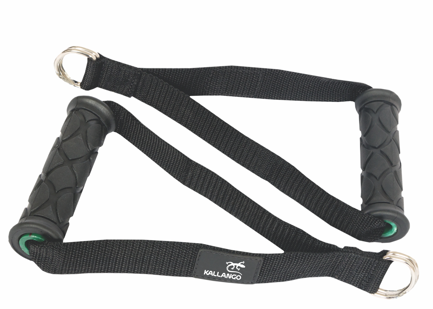 Produzido em fita de polipropileno, manoplas emborrachadas, argolas duplas para ancoragem.